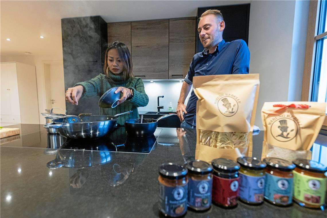 Puspa Andayani und Daniel Mildenberger kochen auch in der eigenen Küche mit den Produkten ihres Unternehmens. Fotos: A. Becher