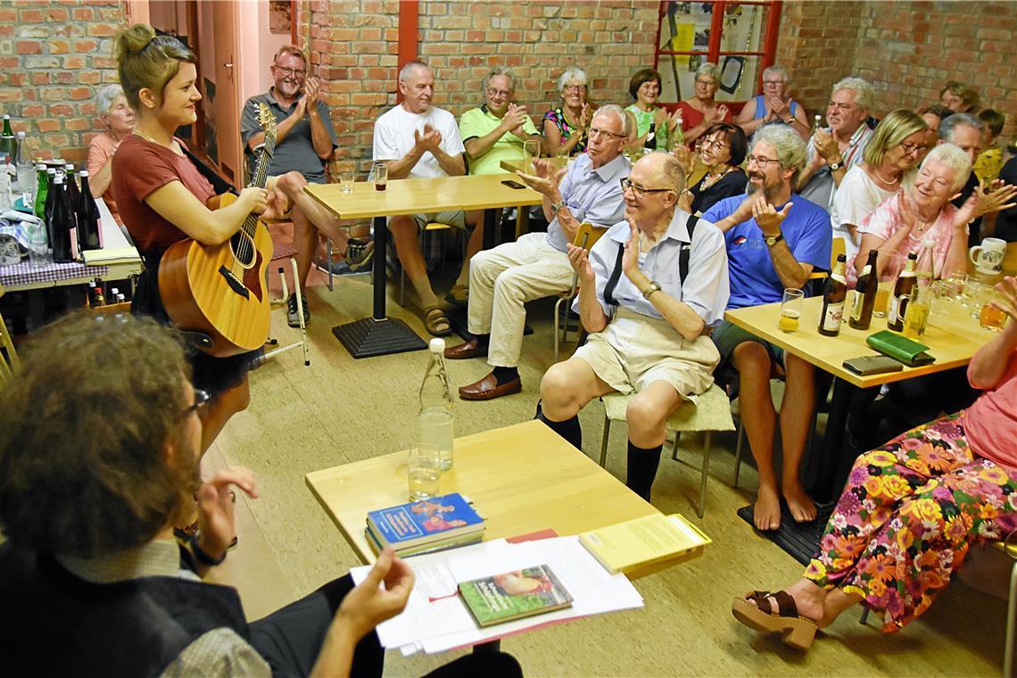 Bei der letzten Abendveranstaltung im Juli landete er gleich zwei Volltreffer: Johannes F. Kretschmann (Sprachwissenschaftler und Sohn des baden-württembergischen Ministerpräsidenten Winfried Kretschmann) und Elena Seeger waren zu Gast. Beide Künstler sind keine Unbekannten mehr, Elena Seeger bekam 2020 mit dem Sebastian-Blau-Preis eine Auszeichnung für schwäbische Mundartkünstler verliehen. Der Abend fand zur großen Freude von Albert Dietz Anklang, alle Plätze in der Ölmühle waren besetzt.