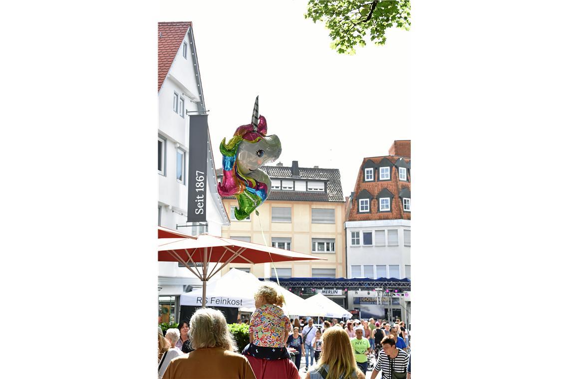Bei bestem Wetter genießen Besucherinnen und Besucher am Sonntag das Angebot auf dem Straßenfest.