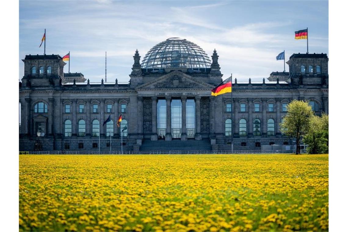 Löwenzahn blüht auf der Wiese vor dem Reichstagsgebäude in der Morgensonne. (Archivbild). Foto: Kay Nietfeld/dpa