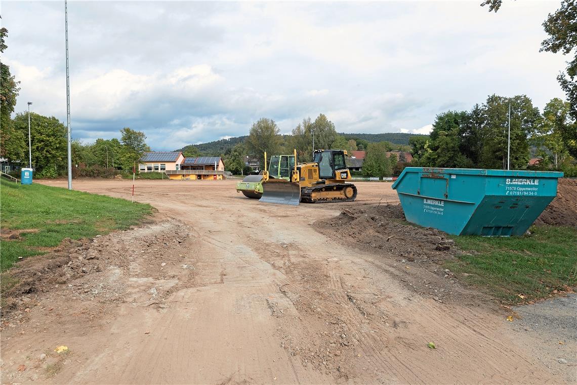 Die ersten Arbeiten haben Bagger und Walze in Oberbrüden bereits erledigt. Der neue Kunstrasenplatz darf nun kommen. Foto: J. Fiedler