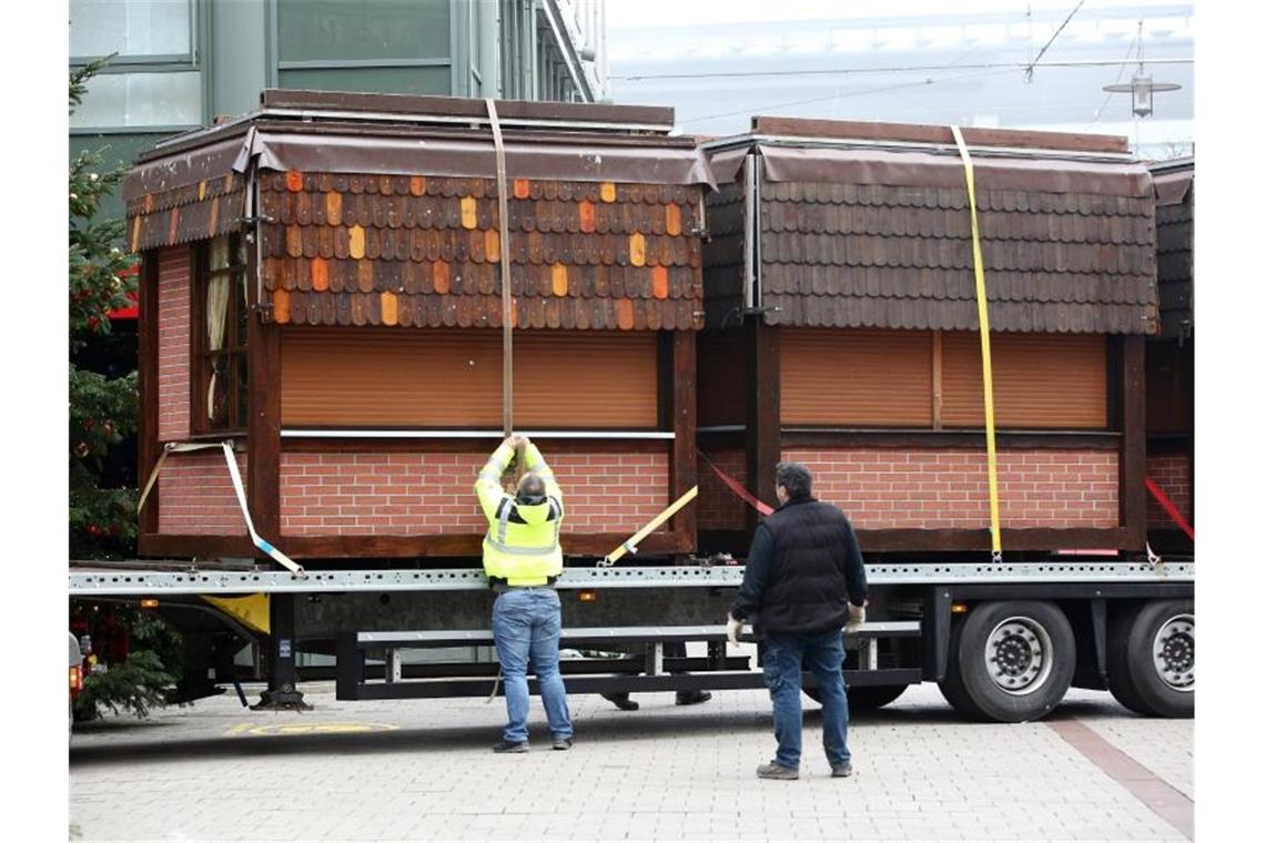 Buden werden in der Innenstadt von Hamburg verladen und abtransportiert. Foto: Bodo Marks/dpa