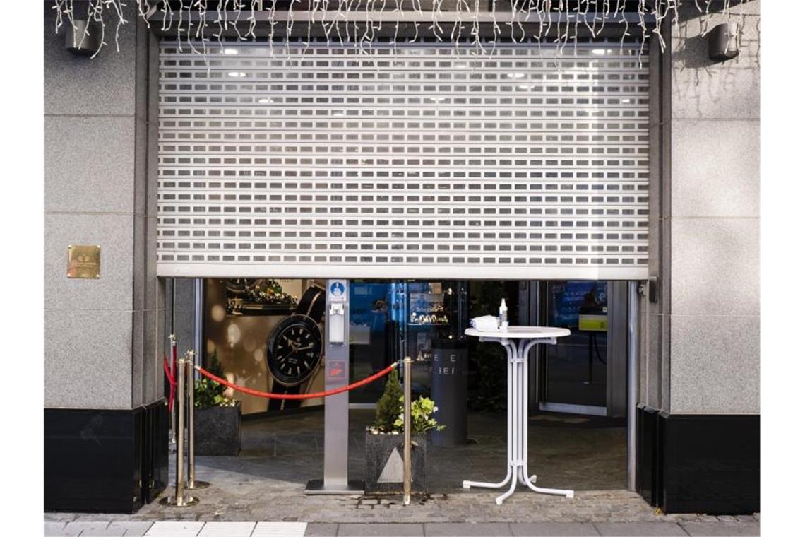 Ein Juweliergeschäft in Kiel hat das Rolltor am Eingang zur Hälfte geschlossen. Foto: Frank Molter/dpa