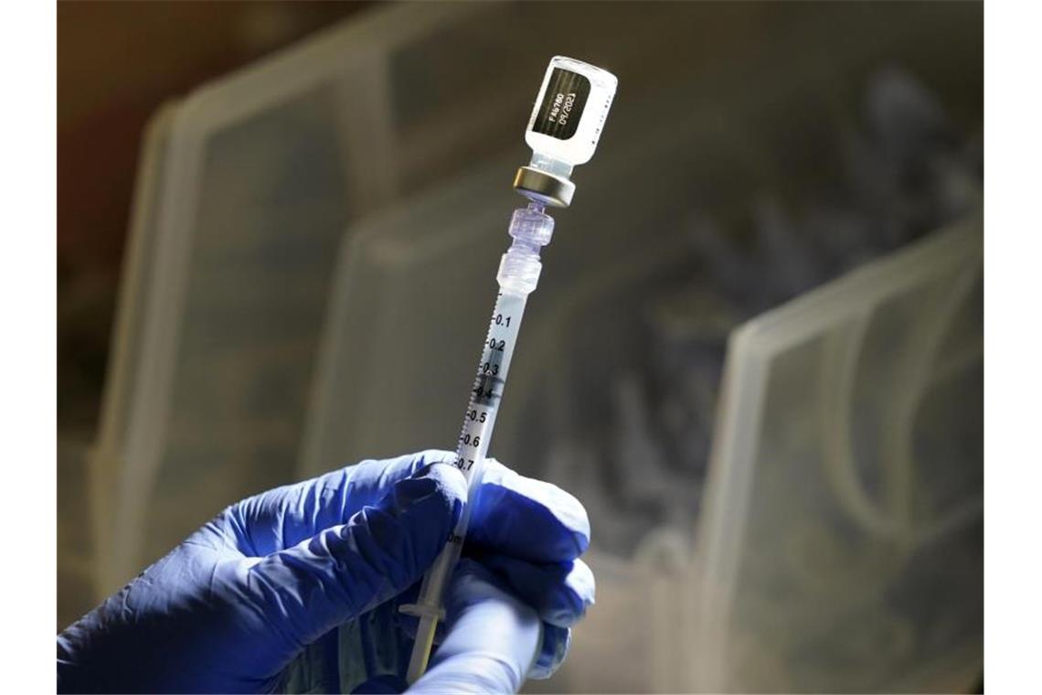 Eine Dosis des Biontech/Pfizer-Impfstoffs wird vorbereitet. Foto: Elaine Thompson/AP/dpa
