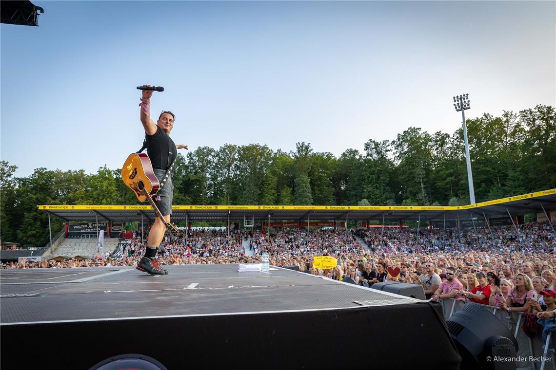 Der Volks-Rock-’n’-Roller aus der Steiermark begeisterte in der Aspacher Wir-machen-Druck-Arena 15.000 Fans. Das Konzert am Samstagabend war schon seit Wochen ausverkauft, hier gibt es Bilder von dem Auftritt.