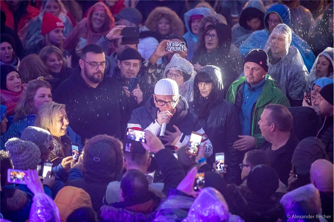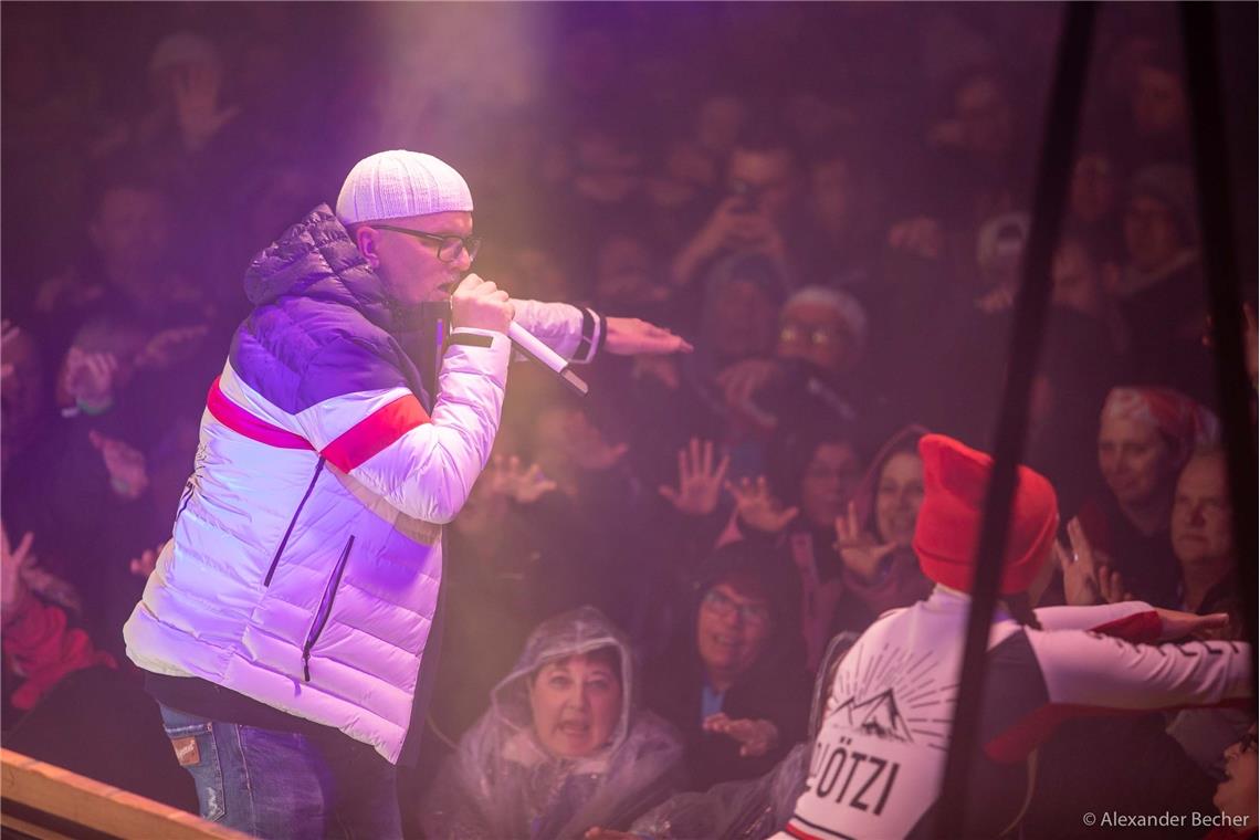 ASPACH. Sie sind aus Dänemark und den Niederlanden angereist, aus Hamburg und München, Heidelberg und Konstanz, aber auch aus Ludwigsburg und dem Rems-Murr-Kreis: Frauen und Männer, Kinder, Jugendliche, junge Erwachsene und Rentner – eine bunte Mischung aller Altersklassen. Und sie alle wollen DJ Ötzi sehen. Das einzige Konzert seiner „Gipfeltour 2020“, das in Deutschland und fernab aller Skigebiete stattfindet, gibt der österreichische Sänger auf dem Dorfplatz des Kleinaspacher Hotels Sonnenhof. Der einzige „Gipfel“, der von dort aus zu sehen ist, ist der des Föhrenbergs. Und im Gegensatz zu den weiteren Spielorten der Tour, etwa Hintertux in Tirol auf 1493 Metern oder die Bergstation der Schlossalmbahn in Österreich auf 2061 Metern, liegt Kleinaspach auf etwa 300 Meter über Normalhöhennull. „Wir sehen uns in Aspach (...). Dieses Mal nicht am Berg, sondern bei der Berg“, kündigte DJ Ötzi schon im Vorfeld humorig auf Instagram an.