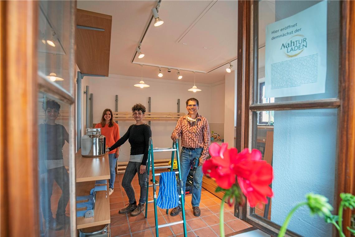 Malin Ludwig, Jasmin Schwarz und Thomas Ludwig (von links) legen derzeit letzte Hand an, damit der Laden demnächst eröffnen kann. Foto: A. Becher