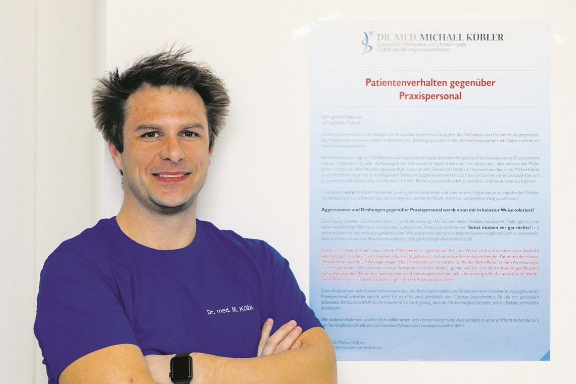 Mit Plakaten unter dem Titel „Patientenverhalten gegenüber Praxispersonal“ hat der Backnanger Orthopäde und Unfallchirurg Michael Kübler sich an seine Patienten gewandt und einen respektvollen Umgang mit seinen Angestellten gefordert. Die Problematik mit unverschämten Patienten scheint weitverbreitet zu sein, denn nun hat auch ein landesweiter Ärzteverband Küblers Aktion aufgegriffen.