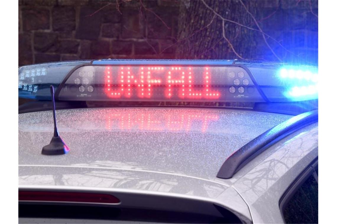 Die Leuchtschrift „Unfall“ ist auf dem Dach eines Polizeiwagens zu sehen. Foto: Carsten Rehder/dpa/Symbolbild