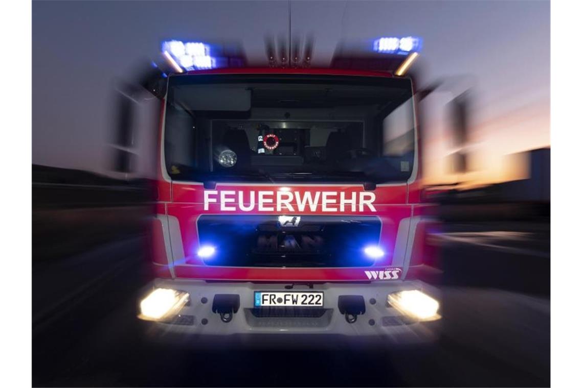 Ein Feuerwehrfahrzeug steht mit eingeschaltetem Blaulicht auf einer Straße. Foto: Patrick Seeger/dpa/Symbolbild