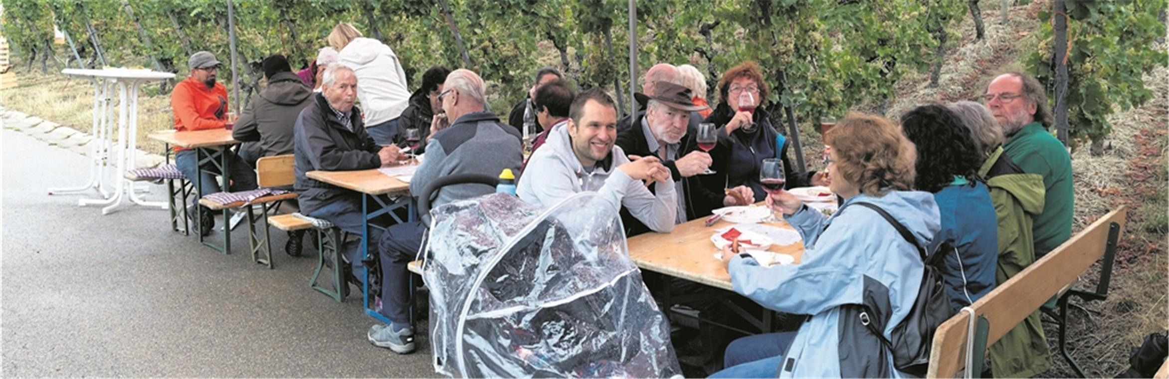 Besucher der wandernden Wein- und Sektprobe bei der Kelter Kleinaspach trotzen leichtem Nieselregen – Jahrgangsaussichten sehr gut