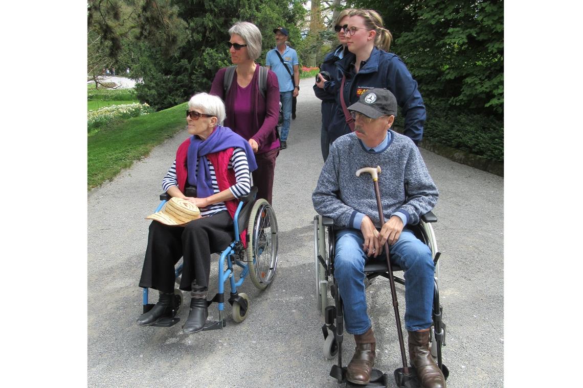 Zwei Hospizbewohner haben sich gewünscht, gemeinsam auf die Blumeninsel Mainau zu fahren. Um das zu ermöglichen, wurde der Wünschewagen aus Mannheim hinzugebeten. Jessica Kienzle (rechts hinten) war mit dabei – für sie eine bereichernde Erfahrung. Fotos: ASB Ludwigsburg