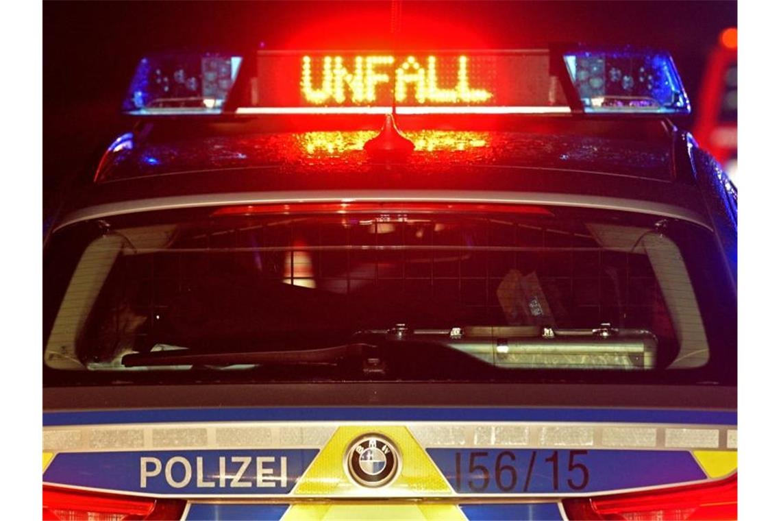 Ein Streifenwagen der Polizei steht an einem Unfallort. Foto: Stefan Puchner/dpa/Symbolbild