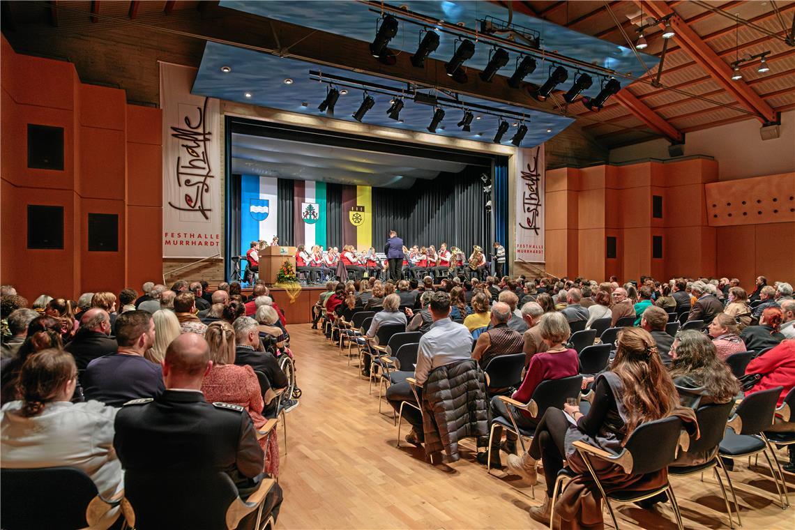 Der Bürgerempfang in der Festhalle fand regen Zuspruch. Der Musikverein Stadtkapelle umrahmte den Abend musikalisch. Foto: Stefan Bossow
