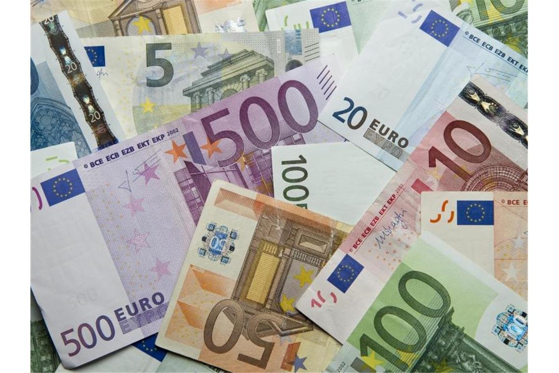 Zahlreiche Euro-Banknoten liegen auf einem Haufen. Foto: Daniel Reinhardt/dpa/Archivbild