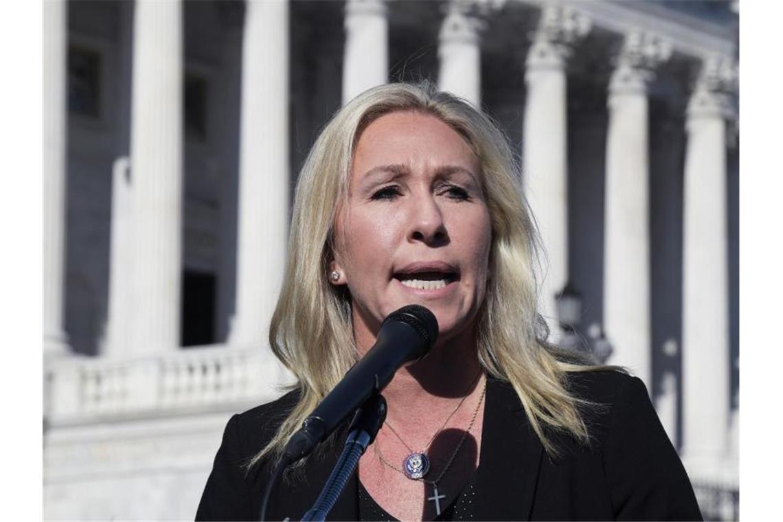 Marjorie Taylor Greene bei einer Pressekonferenz in Washington. Foto: Lenin Nolly/ZUMA Wire/dpa