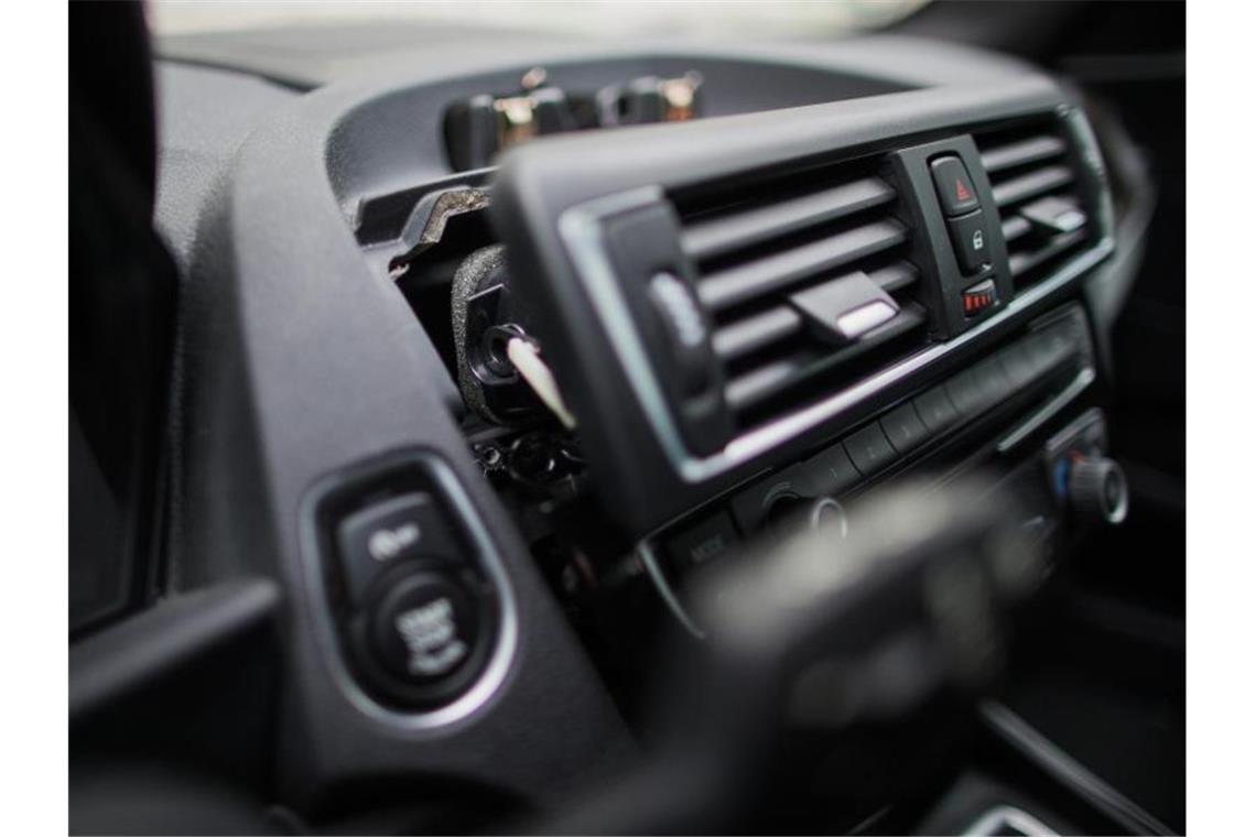 Blick in den Innenraum eines Autos, aus dem Elektronik ausgebaut und gestohlen wurde. Foto: Rolf Vennenbernd
