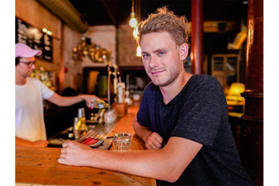 Mannheims Nachtbürgermeister Hendrik Meier sitzt in der Bar „Hagestolz“ am Tresen. Foto: Uwe Anspach/dpa/Archivbild