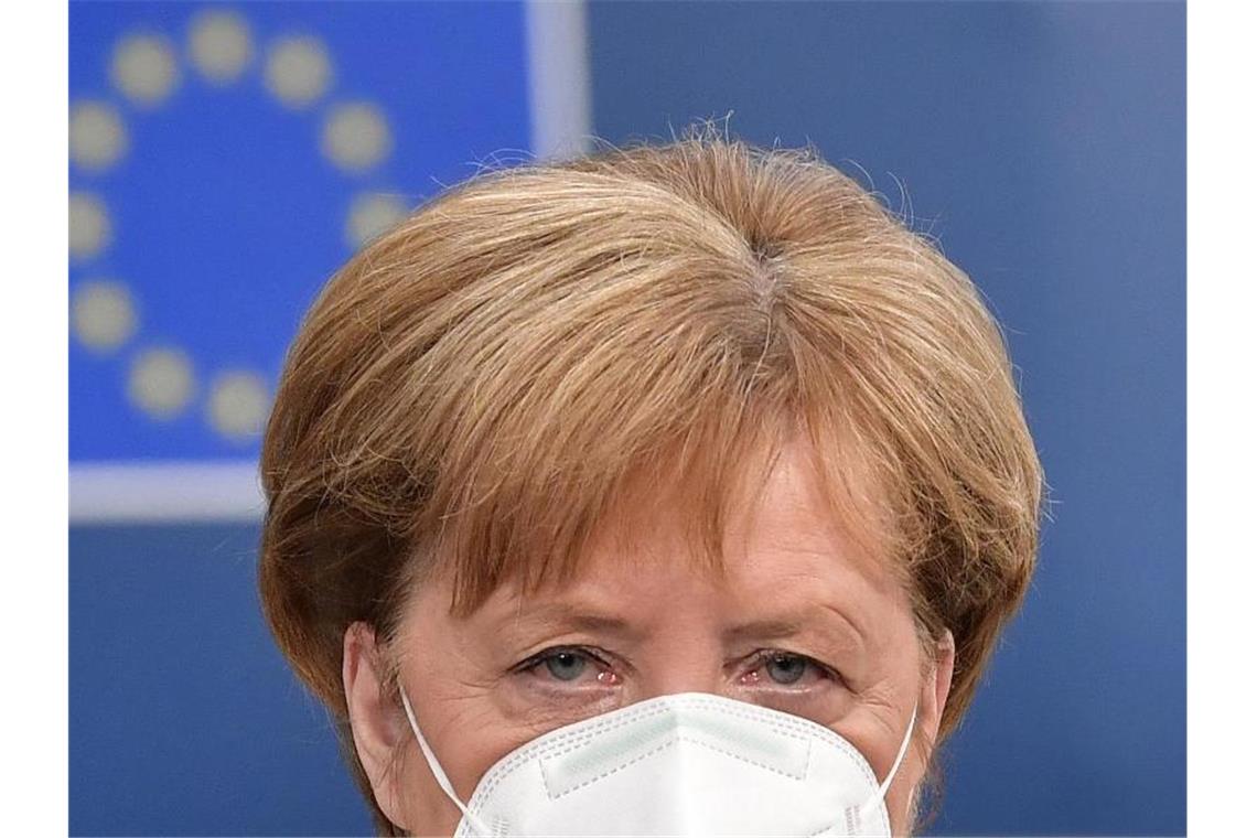 Kanzlerin Merkel spricht während des EU-Sondergipfels in Brüssel zu Medienvertretern. Foto: Francisco Seco/AP Pool/dpa
