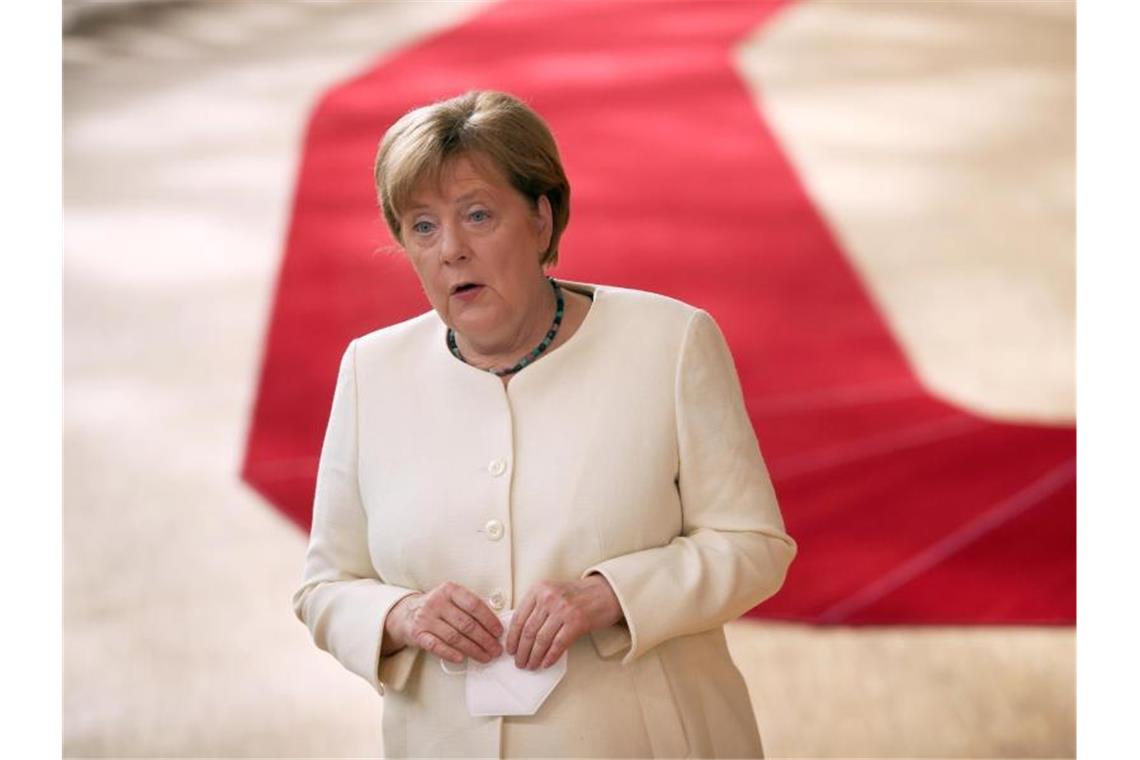 Bundeskanzlerin Angela Merkel trifft beim EU-Gipfel im Gebäude des Europäischen Rates ein. Foto: John Thys/AFP Pool/AP/dpa