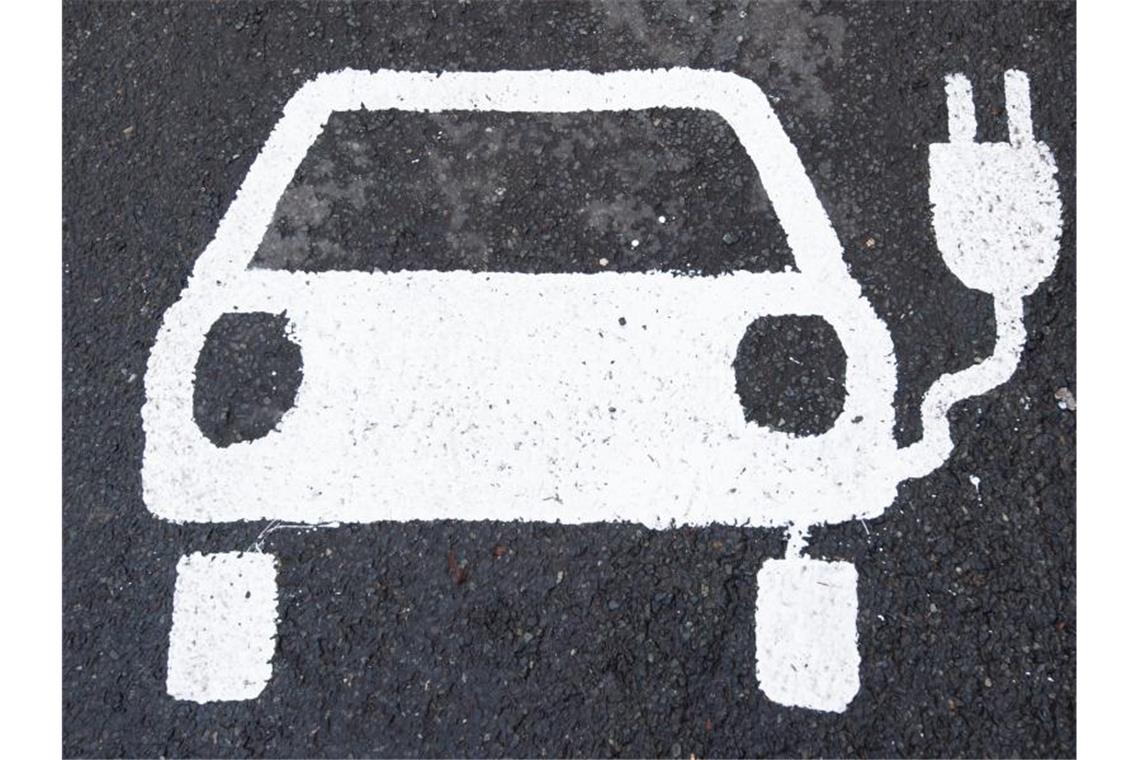 Ein Symbol für ein Elektroauto markiert einen Parkplatz neben einer E-Ladesäule. Foto: Julian Stratenschulte/dpa