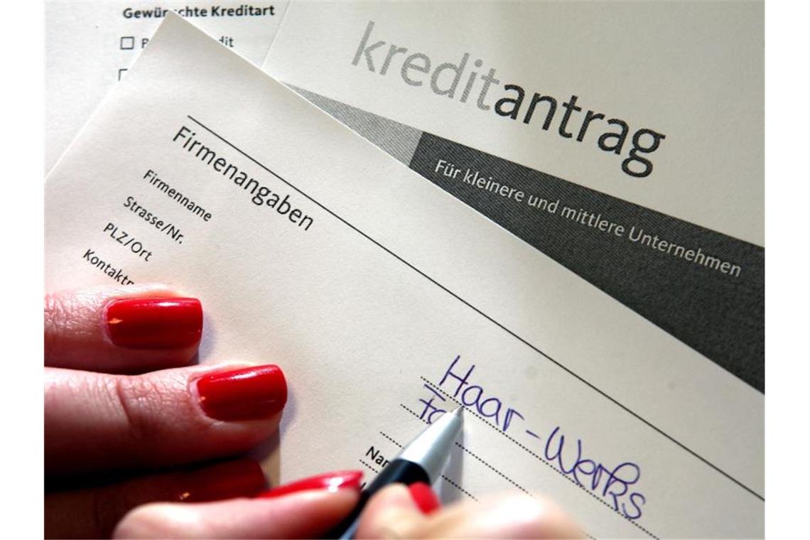 Eine Frau füllt einen Kreditantrag aus. (Archivbild). Foto: picture alliance / dpa