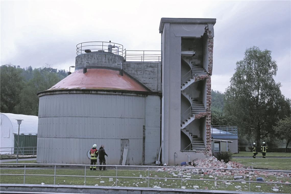 Der Fäulnisturm der Lorcher Kläranlage wurde bei der Explosion schwer beschädigt.Foto: 7Aktuell/K.Lermer