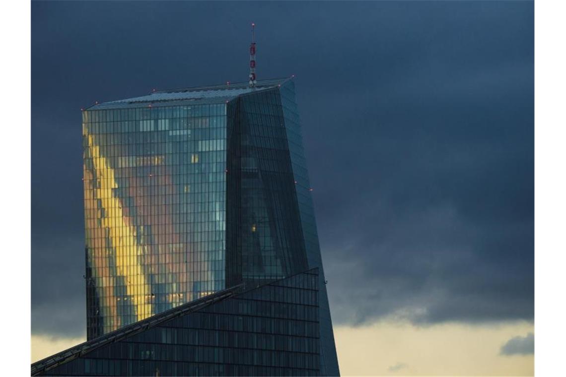 Das Licht der untergehenden Sonne spiegelt sich in der Glasfassade der Europäischen Zentralbank (EZB). Foto: Boris Roessler/dpa