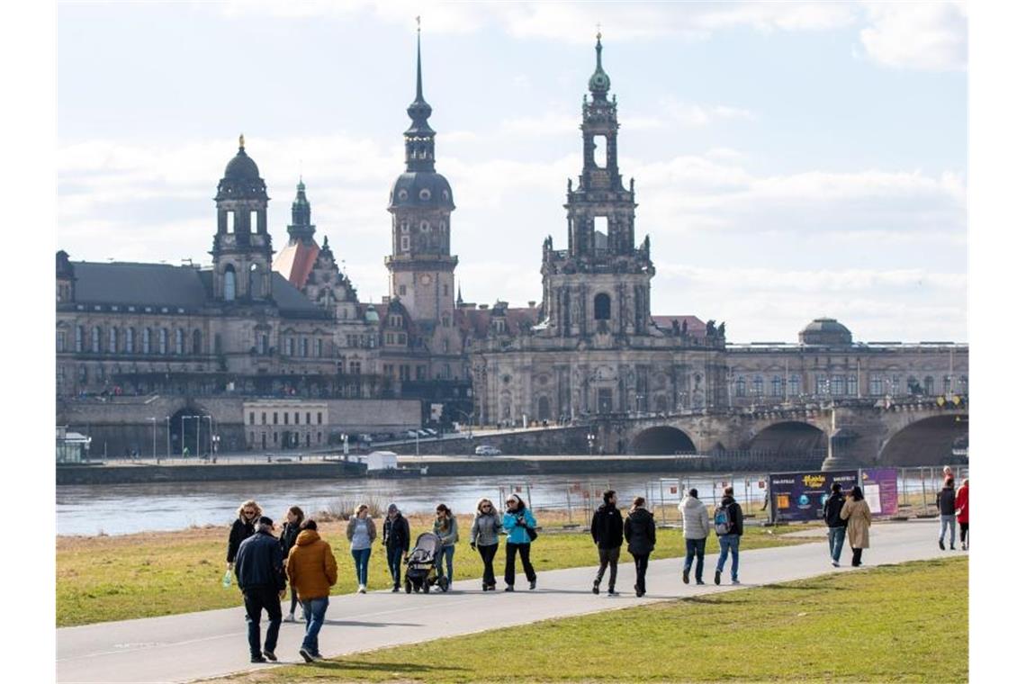 Die Sonnenstrahlen auf dem Elbweg versprühen zusammen mit den Temperaturen einen kleinen Hauch von Frühling. Foto: Daniel Schäfer/dpa-Zentralbild/dpa