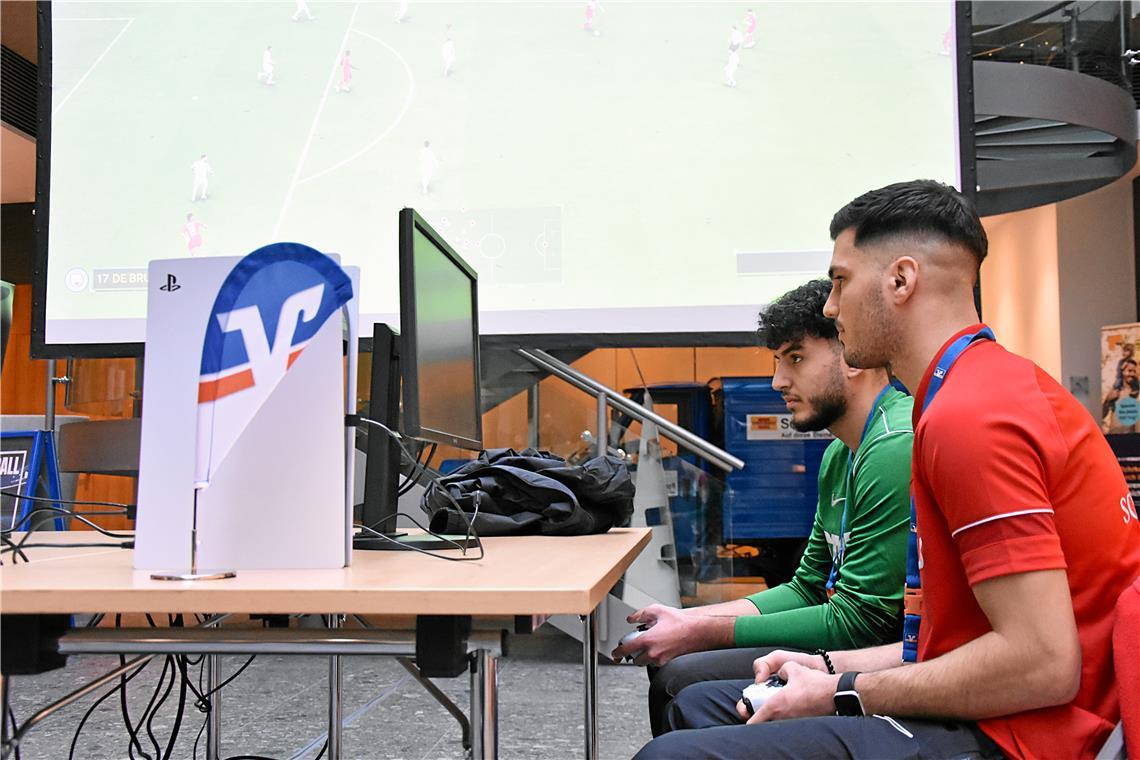 Zehn Teams kämpften beim 5. BKZ-E-Football-Cup um den Turniersieg, den sich Imer Spatolaj für den FC Viktoria Backnang im Endspiel gegen Mert Tasdelen von der SG Sonnenhof Großaspach sicherte. Für die Veranstaltung hat sich der Kundenraum der Hauptgeschäftsstelle der Volksbank Backnang als die ideale Location erwiesen, denn im Herzen der Innenstadt schauten immer wieder neugierige Passanten oder Gäste des direkt angrenzenden Cafés vorbei.