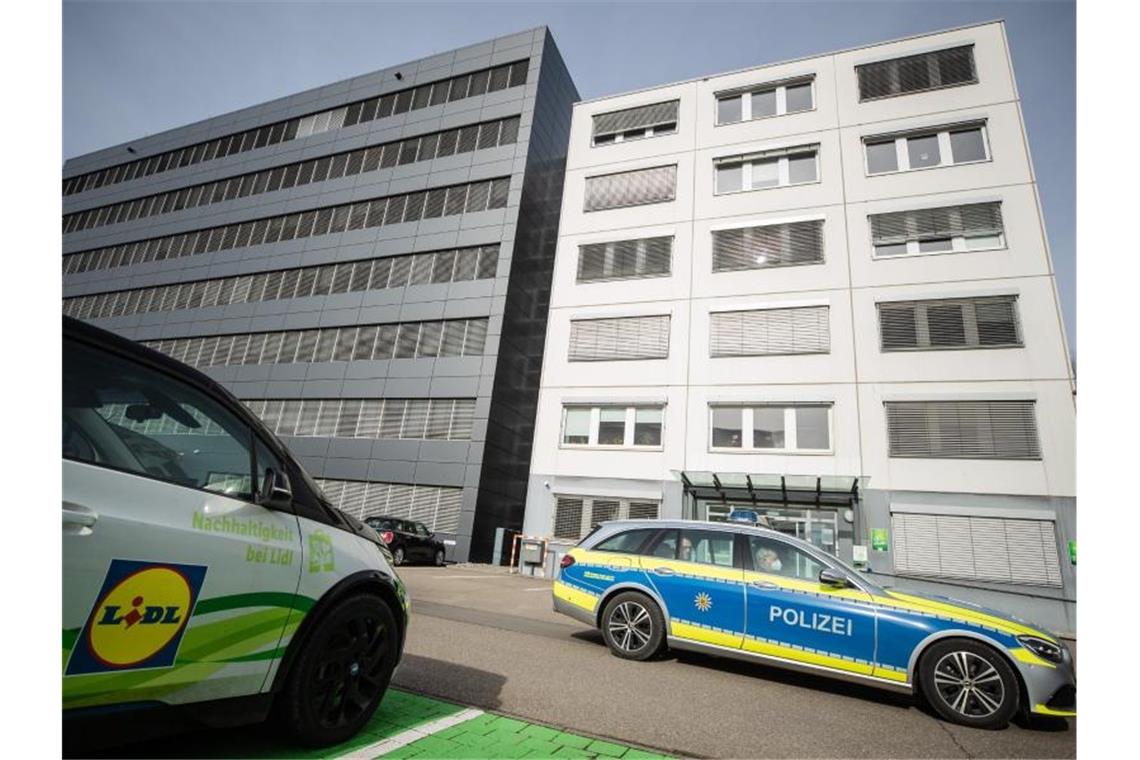 Ein Polizeiauto fährt an der Lidl-Zentrale in Neckarsulm vorbei. Foto: Christoph Schmidt/dpa/Archivbild