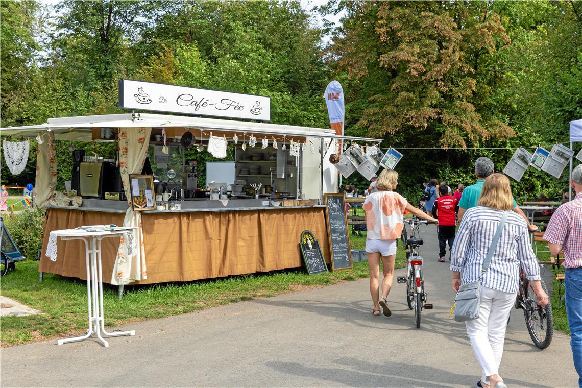 Auch am Stand der Backnanger Kreiszeitung schauten zahlreichen Besucher vorbei. Sie konnten dort Fotos mit einer überdimensionalen BKZ-Titelseite machen lassen und so selbst zum Covergirl oder Coverboy werden. Wer wollte, konnte auch eine Tasse frisch gebrühten Kaffee genießen, denn die BKZ kooperierte diesmal mit der „Café-Fee“ Andrea Tramer aus Korb. Neben Kaffeespezialitäten servierten sie und ihr Partner Armin Stark auch „Kräpfle“, eine schwäbische Variante der holländischen Poffertjes, die je nach Geschmack mit Puderzucker, Apfelmus oder Eierlikör serviert wurden.