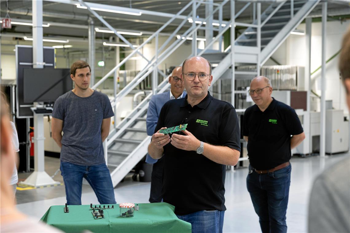 Jürgen Zeltwanger, Geschäftsführer von Murrplastik im Ortsteil Zell, stellte das Unternehmen an der ersten Station des Career Walks vor und führte die Gruppe durch die Fertigungshallen. Die Besucher lernten dort die Produkte der Firma kennen, darunter Leerrohre und Roboterhalterungen. Mit schützenden Ohrstöpseln ging es in einen Raum, in dem riesige Maschinen den Verschleiß der Produkte testen.