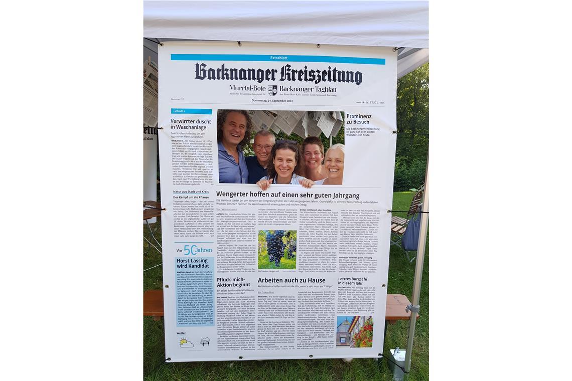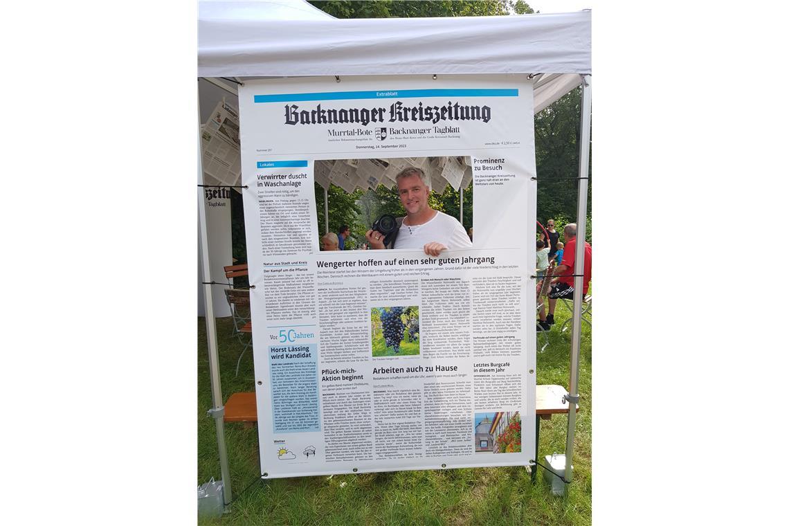 Einmal auf der Titelseite der Zeitung stehen: Diesen Traum erfüllten sich viele Besucherinnen und Besucher bei der Leistungsschau in Oppenweiler. Mit unserer überdimensionalen Zeitungsseite konnten sie am Stand der Backnanger Kreiszeitung selbst zum Covergirl oder Coverboy werden. In unserer Bildergalerie finden Sie viele bekannte Gesichter und vielleicht auch Ihr eigenes.