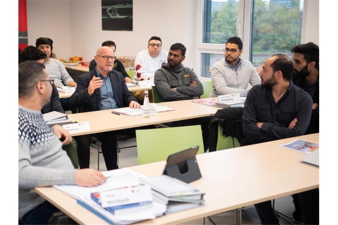 dpa/lsw Mannheim. In einem bundesweit einzigartigen Projekt werden in Baden-Württemberg Flüchtlinge zu Lokführern ausgebildet. Sie sollen die Personalnot der Eisenbahn-Verkehrsunternehmen lindern helfen. Nach Schätzungen fehlen derzeit mehrere Tausend Lokführer in Deutschland. Die ersten 15 Flüchtlinge im Alter von 22 bis 36 Jahren haben in Mannheim ihre einjährige Ausbildung zum Triebwagenführer begonnen. Ein vom Land finanzierter Integrationscoach soll ihnen bei Verständigungsproblemen und Behördengängen helfen. Baden-Württembergs Verkehrsminister Winfried Hermann (Grüne) sagte am Mittwoch in Mannheim: „Wir haben ein Problem: Jeder vierte Zug fällt aus oder kommt zu spät, weil ein Lokführer ausfällt.“