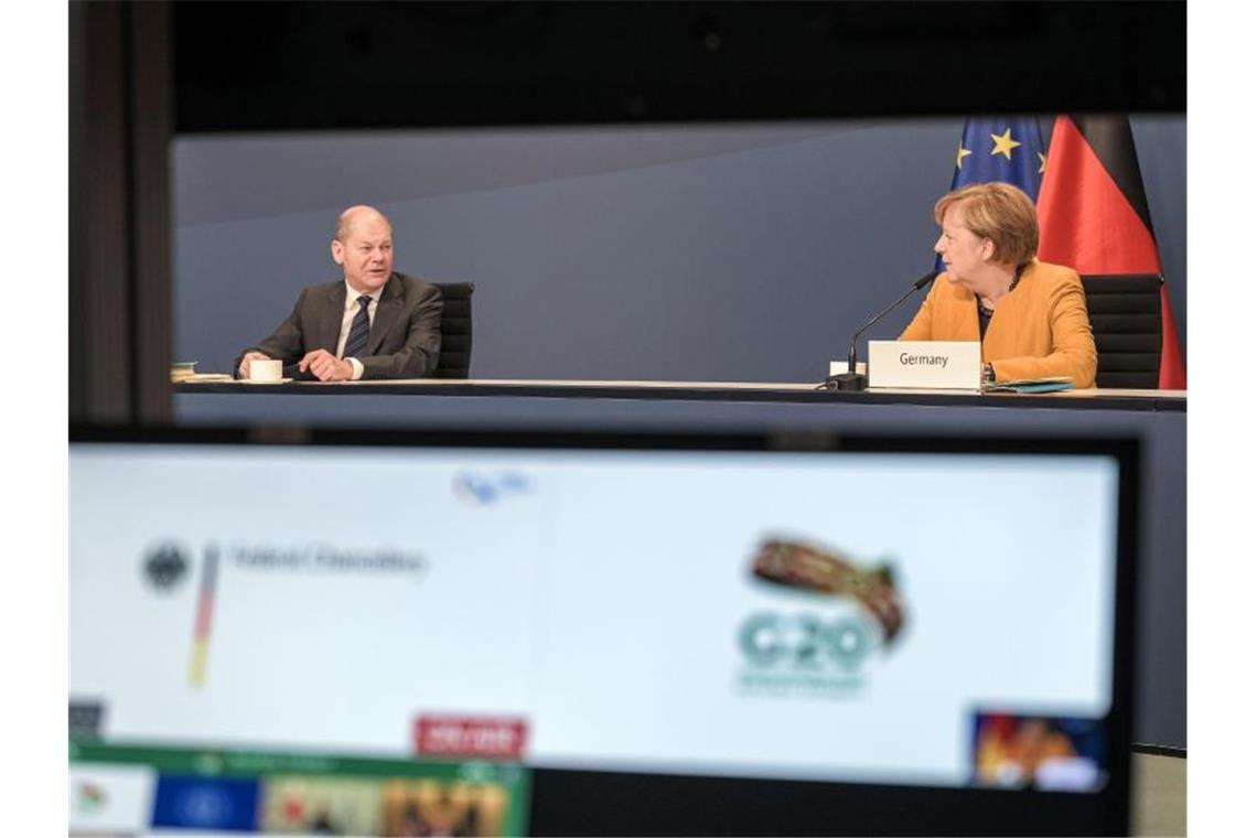 Kanzlerin Merkel und Finanzminister Olaf Scholz nehmen am virtuellen G20-Gipfel teil. Foto: Guido Bergmann/Bundesregierung/dpa