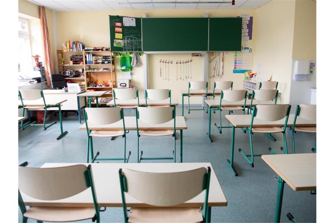 In einem menschenleeren Klassenraum einer Grundschule sind die Stühle hochgestellt. Foto: Sina Schuldt/dpa