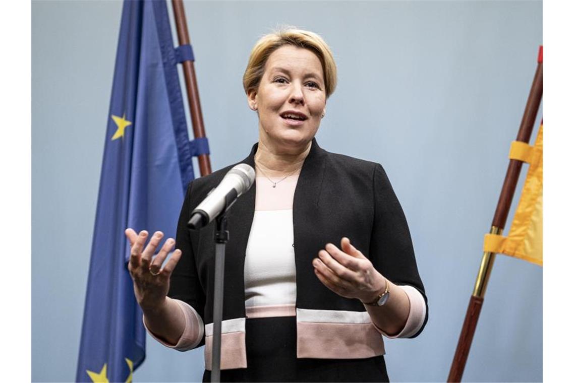 Franziska Giffey (SPD), Bundesministerin für Familie, spricht auf der Pressekonferenz zu Studienergebnissen zur Ganztagsbetreuung. Foto: Fabian Sommer/dpa