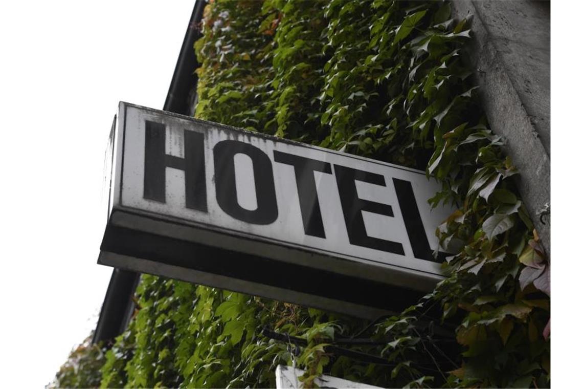 Ein Schild "Hotel" ist an der mit Efeu bewachsenden Wand eines Gebäudes angebracht. Foto: Roberto Pfeil/dpa/Illustration