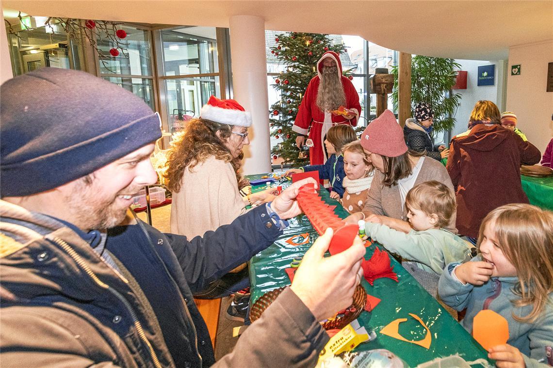 Besuch vom Nikolaus gestern beim Bastelangebot im Rathaus Aspach. Fotos: Dietmar van der Linden
