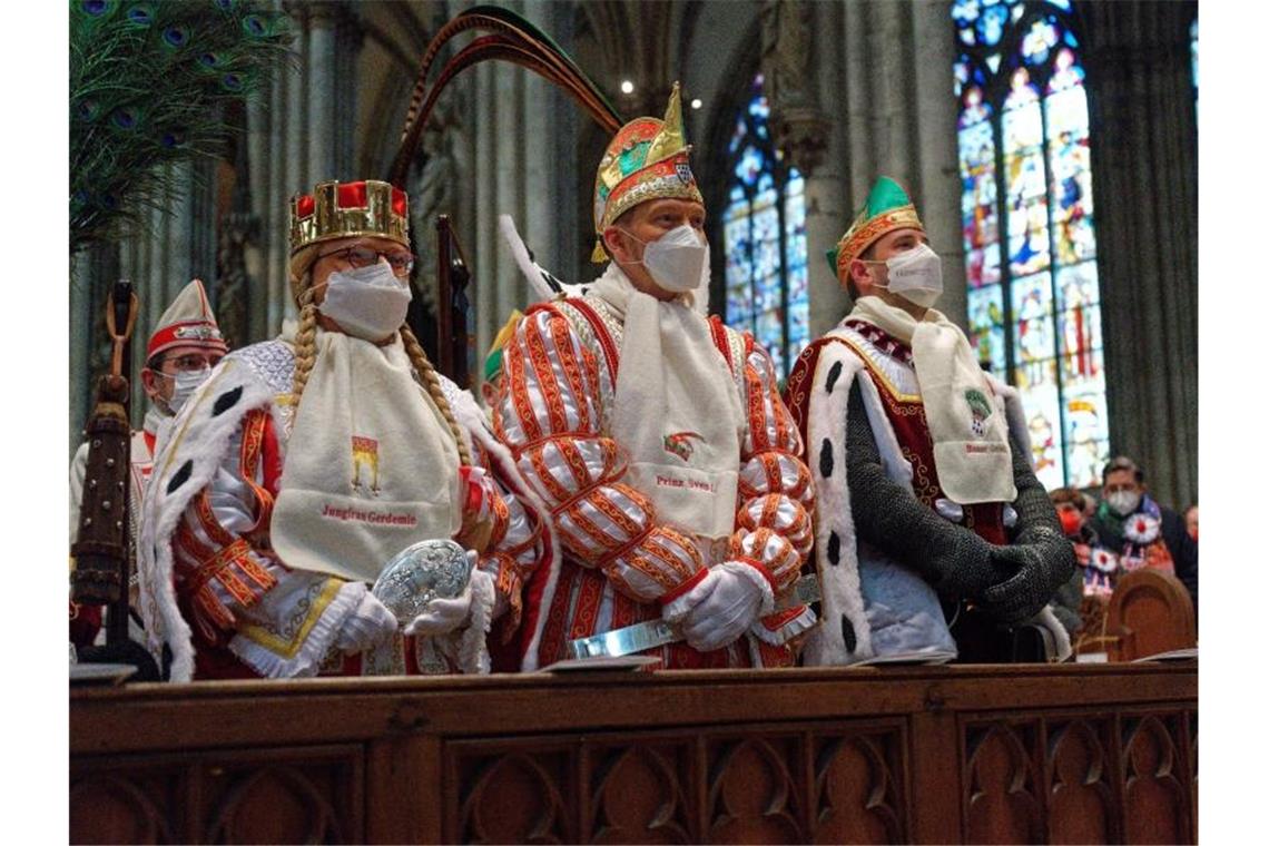 Das Dreigestirn mit Prinz Sven I. an der Spitze und Vertreter verschiedener Karnevalsgesellschaften sind am Samstag zu einem ökumenischen Gottesdienst im Kölner Dom zusammengekommen.