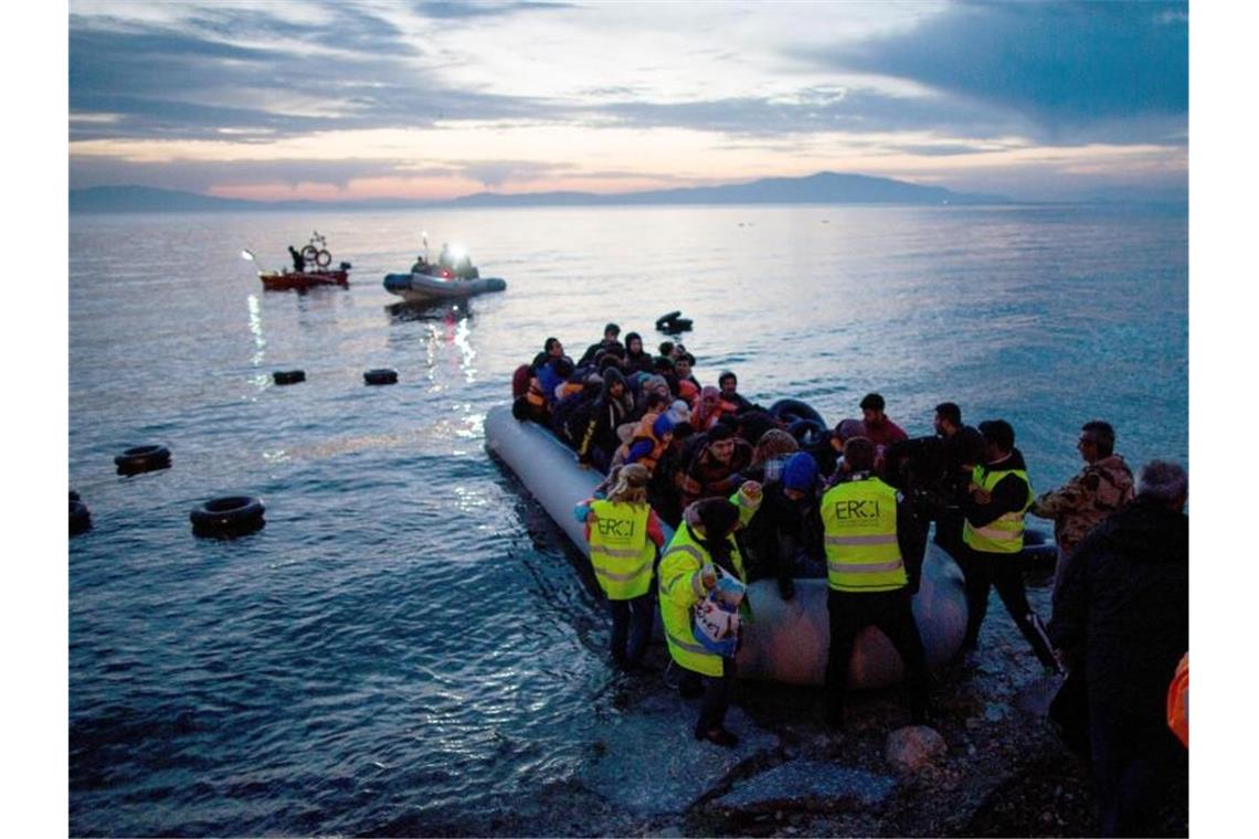 Das Foto aus dem Jahr 2016 zeigt Flüchtlinge, die in einem Schlauchboot aus der Türkei auf der griechischen Insel Lesbos ankommen. Foto: Kay Nietfeld/dpa