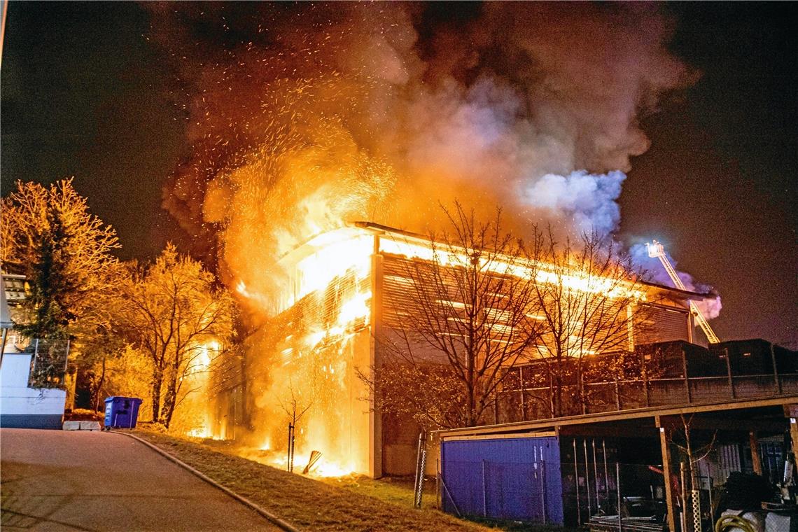 Waiblingen. In der Nacht auf Mittwoch ist in Waiblingen eine Lagerhalle des Entsorgungsunternehmens Alba in Brand geraten. Die Löscharbeiten dauern noch immer an. Nach ersten Schätzungen ist ein Schaden in Millionenhöhe entstanden. Nach Angaben der Polizei teilte gegen 2.45 Uhr ein Autofahrer mit, dass er aus Richtung des Industriegebietes Eisental eine starke Rauchentwicklung beobachtet habe. Eine Streife, die kurze Zeit später am Ereignisort in der Anton-Schmidt-Straße eintraf, stellte fest, dass eine etwa 30 mal 30 Meter große Lagerhalle des Entsorgungsunternehmens in Vollbrand steht. In der Halle war nach bisherigem Kenntnisstand eine größere Menge Altpapier gelagert. Durch die große Hitzeeinwirkung wurden mehrere neben der Halle abgestellte Fahrzeuge ebenfalls beschädigt. Die umliegenden Feuerwehren sind derzeit mit einem Großaufgebot vor Ort. Nach aktuellem Kenntnisstand wurde niemand verletzt. Die Polizei hat die Ermittlungen zur Brandursache aufgenommen. Im Industriegebiet Eisental kommt es derzeit aufgrund der Löscharbeiten zu erheblichen Verkehrsbehinderungen. Ortskundige Verkehrsteilnehmer werden gebeten, das Gebiet weiträumig zu umfahren.