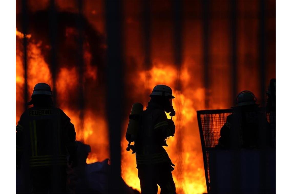 In einem Gewerbegebiet im Rhein-Lahn-Kreis brennt es in einem Betrieb im Industriegebiet, der Papierrohstoffe verarbeitet. Foto: Hasan Bratic/dpa