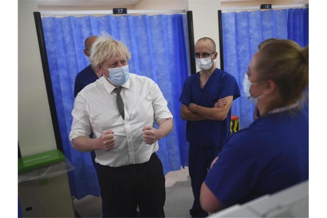 Boris Johnson bei einem Besuch in einem Krankenhaus in Northumberland. Foto: Peter Summers/POOL GETTY/AP/dpa