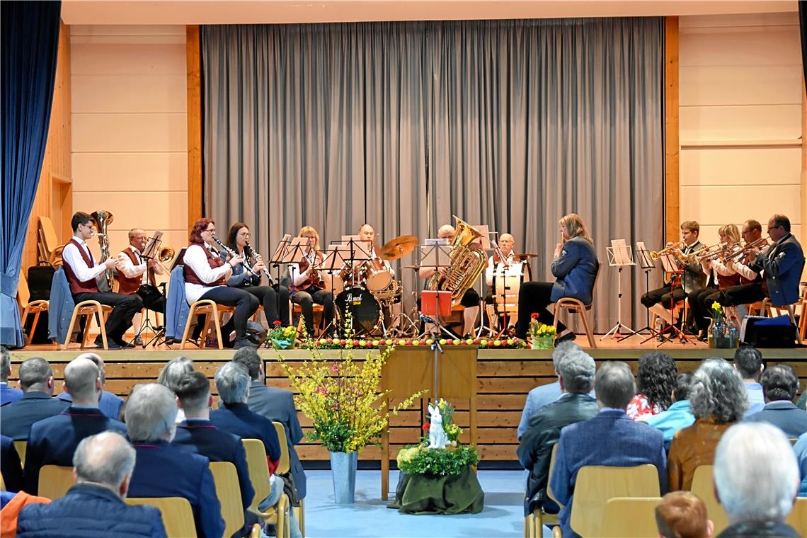 Der Musikverein umrahmt den Großerlacher Bürgertreff in der Schwalbenflughalle Grab. Fotos: Tobias Sellmaier