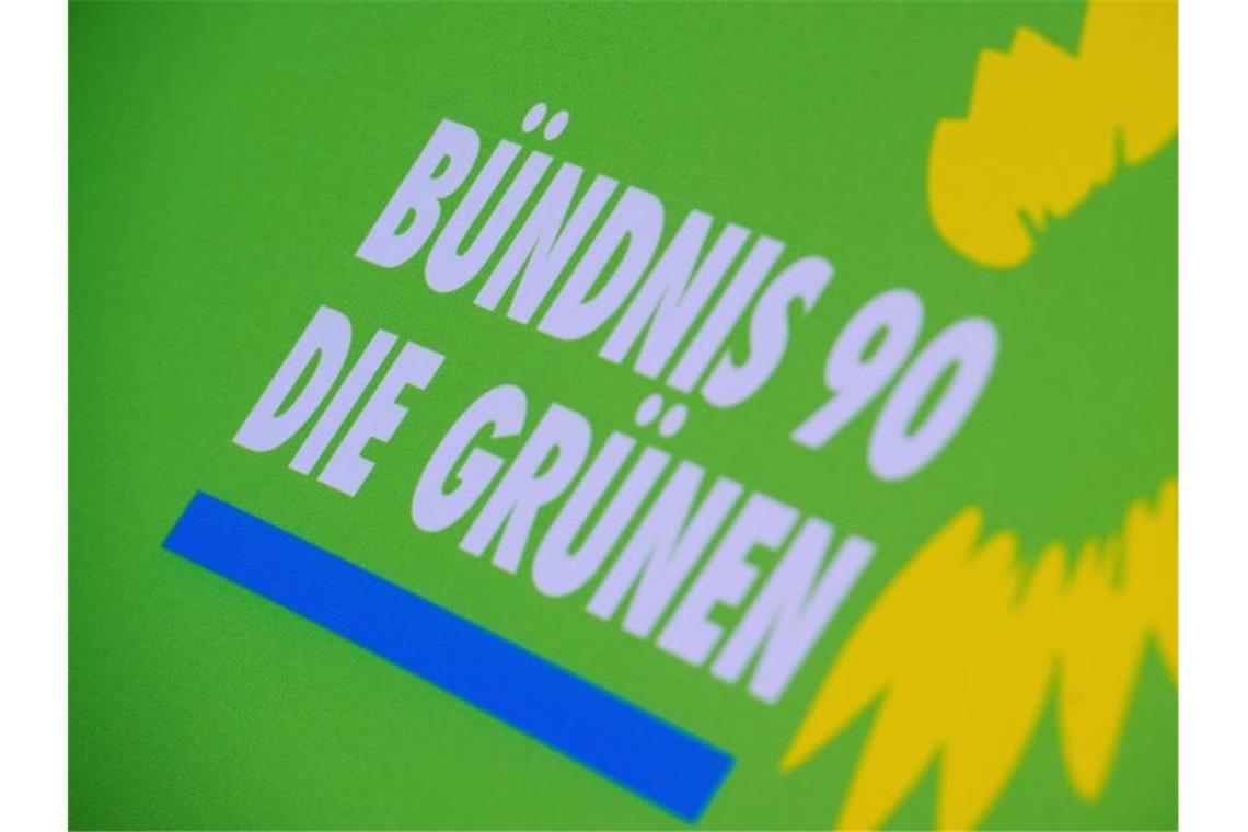 Das Logo der Grünen steht auf einem Aufsteller der Partei. Foto: Stefan Sauer/dpa-Zentralbild/dpa/Archivbild
