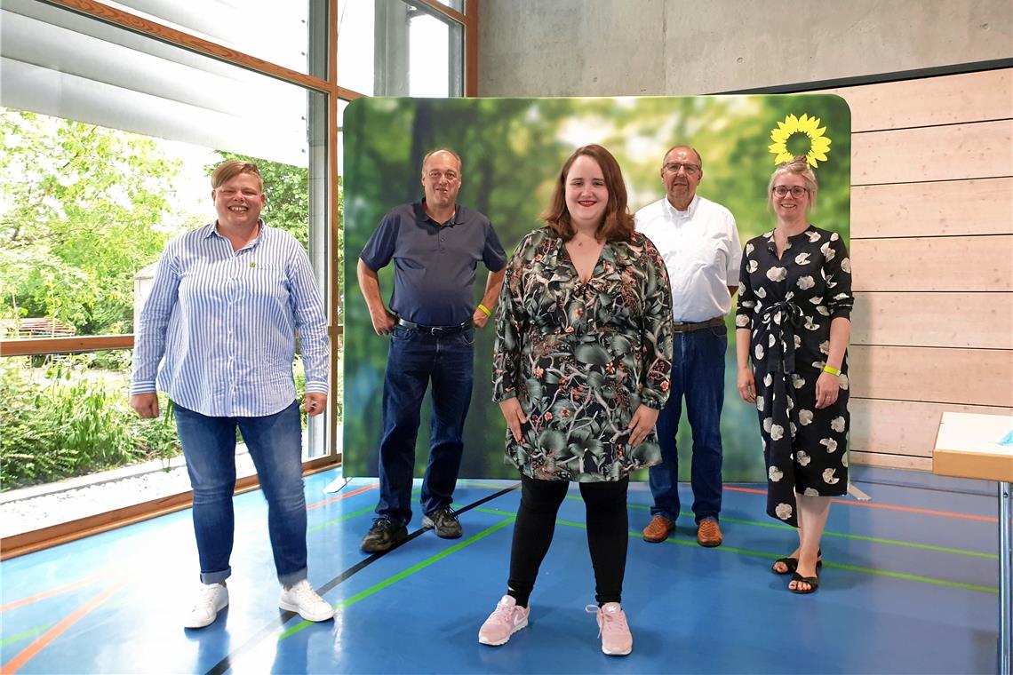 Kandidatenkür im Bundestagswahlkreis Backnang/Schwäbisch Gmünd (von links): Sabine Zilligen und Alex Singer (Vorstand Kreisverband Schwäbisch Gmünd), Kandidatin Ricarda Lang, Rolf Schmidt und Christine van Ofen (Vorstand Kreisverband Rems-Murr). Foto: privat