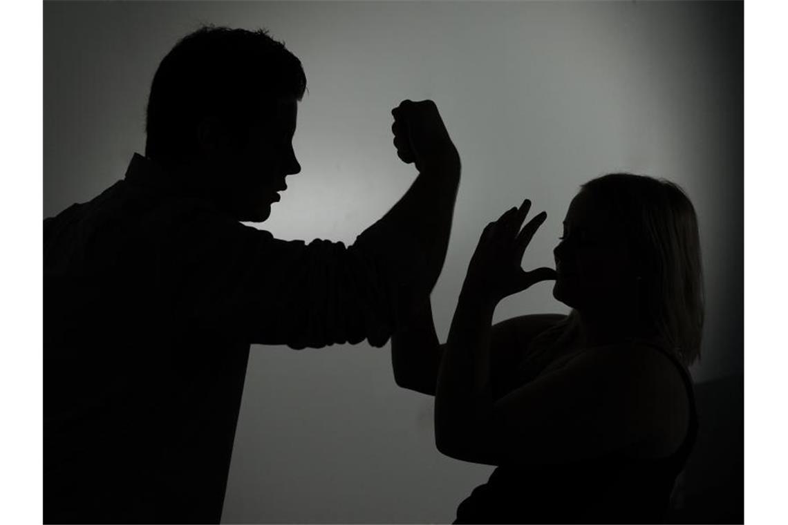 Ein als Silhouette abgebildeter Mann droht einer Frau mit der Faust. Foto: Jan-Philipp Strobel/dpa/Symbolbild