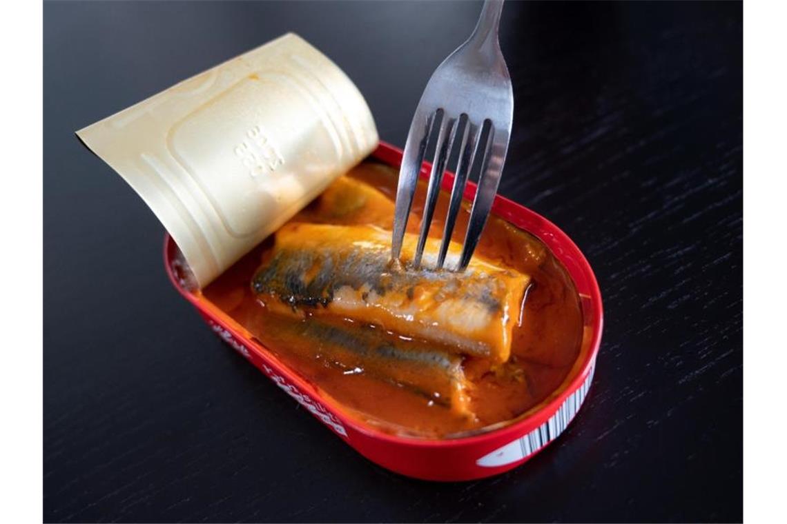 Eine Dose mit Heringsfilets. Foto: Daniel Reinhardt/dpa